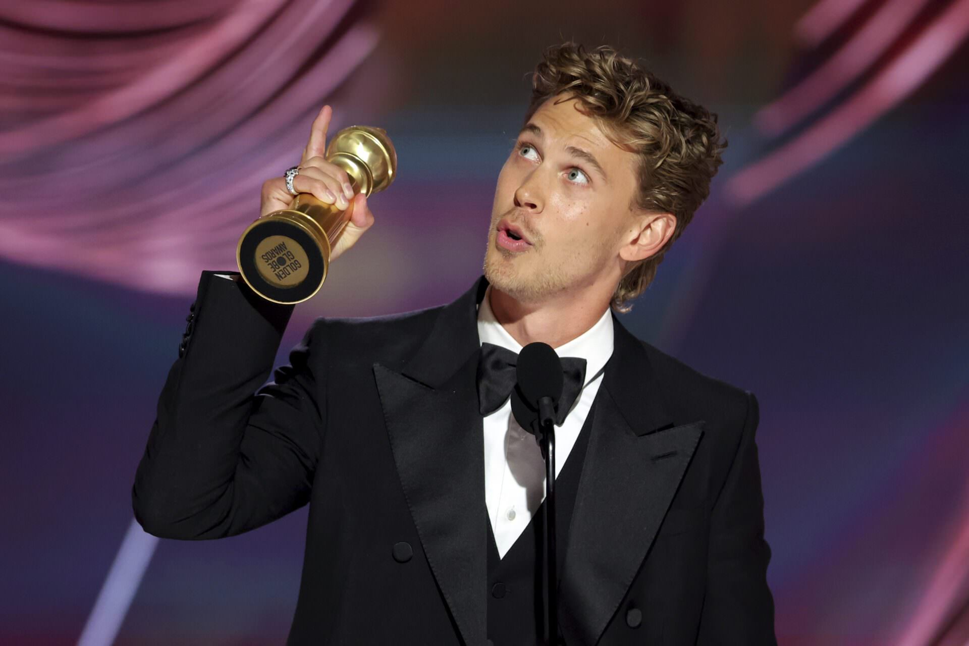 This image released by NBC shows Austin Butler accepting the Best Actor in a Motion Picture – Drama award for „Elvis“ during the 80th Annual Golden Globe Awards at the Beverly Hilton Hotel on Tuesday, Jan. 10, 2023, in Beverly Hills, Calif. (Rich Polk/NBC via AP)