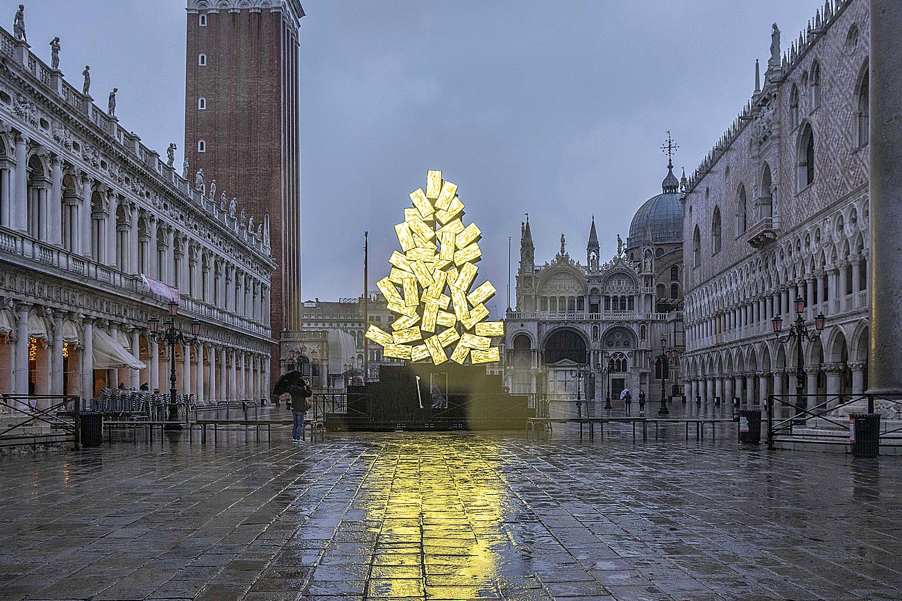 Na Trgu Svetog Marka, gde je istoimena crkva, italijanski umetnik Fabricio Plesi je postavio digitalnu jelku koju čine ogromni pravougaoni ekrani koji emitiju zlatne slike.