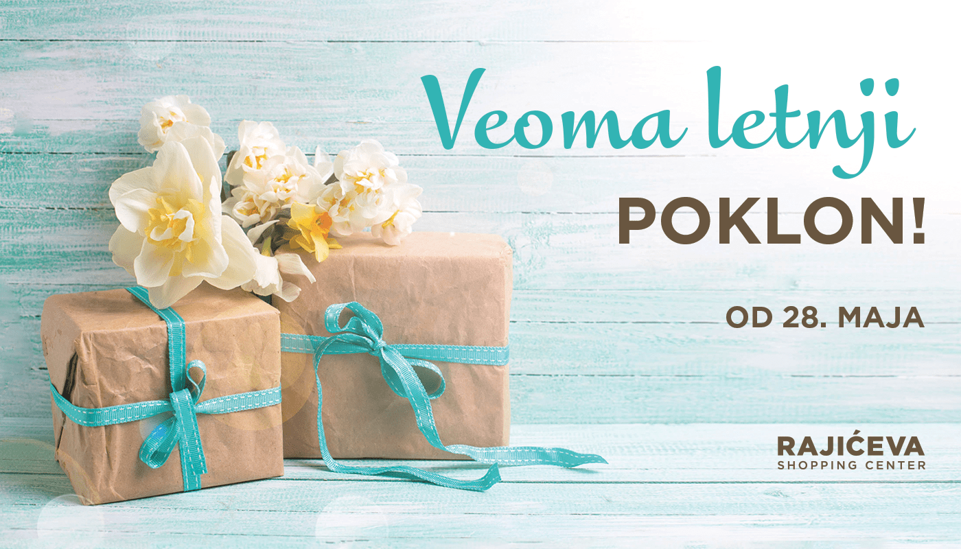 Rajićeva želi da vaše uživanje uvek bude još potpunije i zato vam daruje VEOMA LETNJI POKLON! Od 28. maja uz kupovinu u minimalnom iznosu od 5.000rsd na vašem omiljenom šoping mestu, dobijate veoma letnji poklon koji vas čeka na promo pultu. Posetite centar grada i preuzmite svoj poklon koji će biti neizostavni deo vašeg leta.