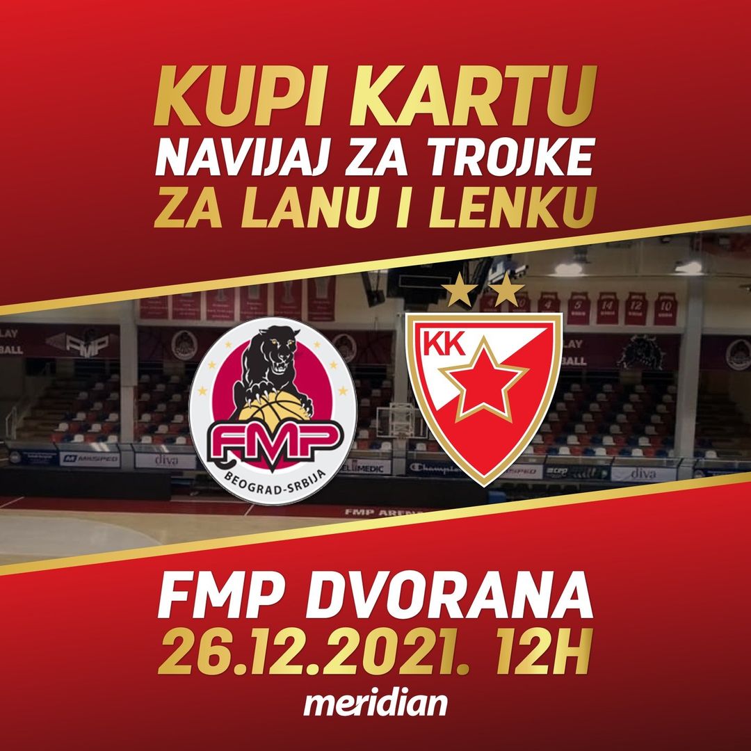 Karte za FMP Meridian – Crvena zvezda mogu se kupiti na biletarnici 2.5h pred početak meča, odnosno od 9:30 u nedelju u FMP dvorani. Takođe, na ulazu će biti postavljene kutije za prilog, te svako ko odluči da donira novac mimo kupovine ulaznice to će moći i da uradi.