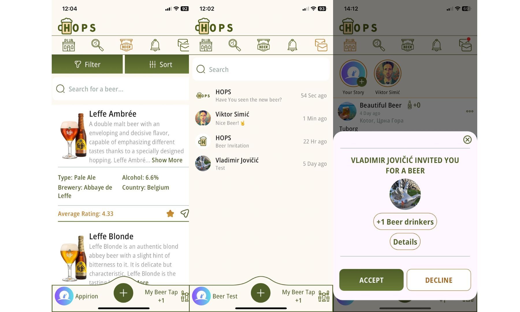 HOPS kombinuje najbolje elemente društvenih mreža, vodiča za pivo i lokalnog mapiranja. „Korisnici mogu da ocenjuju i prave listu omiljenih piva, otkriju gde se određeno pivo toči u njihovoj blizini i prate druge pivopije. Mogu da objavljuju fotografije i story-je, chat-uju, lajkuju, komentarišu i dele sadržaje… baš kao na drugim društvenim mrežama. Tu je i Beer Invite, funkcija koju posebno volimo – jednim klikom pozivaš ekipu na pivo u određeni lokal“, kažu oni i dodaju da je HOPS je praktično, digitalno mesto za okupljanje pivopija, proizvođača piva i ugostiteljskih objekata.
