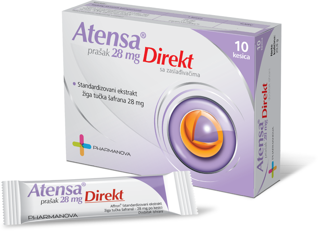 Jedan od bržih i dostupnijih načina oslobađanja stresa jeste i Atensa Direkt, prirodni dodatak ishrani koji sadrži ekstrakt žiga tučka šafrana. Ova supstanca pomaže u održavanju dobrog raspoloženja, stanja relaksiranosti i mentalnog i fizičkog zdravlja. Koristi se širom Indije kao redovan dodatak i u ishrani i u medicini. Neki od benefita koje možete osetiti koristeći Atensa Direkt jesu poboljšanje raspoloženja, kvalitetniji san, redukovano pojavljivanje glavobolja i stomačnih bolova, poboljšan izgled kože, bolja koncentracija.