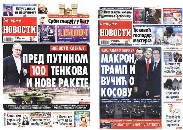Ali danas, isti list, ponovo na naslovnoj strani, najavljuje da će se Vučić, 11. novembra sastati u Parizu sa Trampom i Makronom da „traže rešenje za KiM“. U pitanju je skup povodom stogodišnjice pobede u Velikom ratu.
