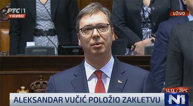 Tekst zakletve koju je Vučić položio glasi: „Zaklinjem se da ću sve svoje snage posvetiti očuvanju suverenosti i celine teritorije Republike Srbije, uključujući i Kosovo i Metohiju kao njen sastavni deo, kao i ostvarivanju ljudskih i manjinskih prava i sloboda, poštovanju i odbrani Ustava i zakona, očuvanju mira i blagostanja svih gradjana Republike Srbije i da ću savesno i odgovorno ispunjavati sve svoje dužnosti“.