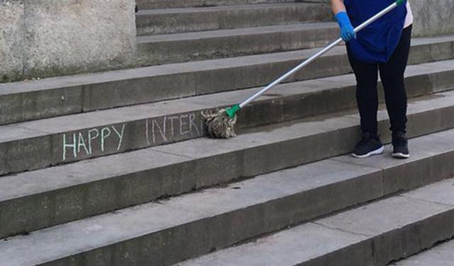 Za Dan žena morala da čisti grafit „Srećan Dan žena“