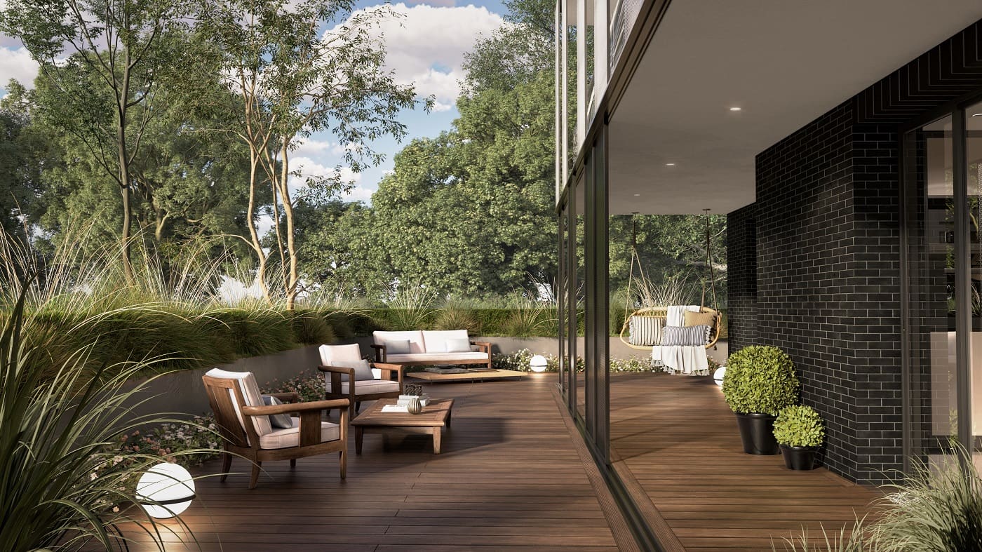 Stanovi koji imaju svoje dvorište, pored ograde biće dodatno ograđeno i žardinjerama kako bi se obezbedila potpuna privatnost. Sve strukture stanova su dostupne na svim etažama, pružajući svojim stanarima mogućnost uživanja u komforu i pogledu na šumu i Beograd na svakoj poziciji.
