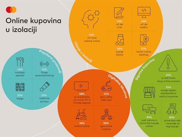 Čak dve od pet osoba (37 odsto) počelo je da koristi onlajn bankarske usluge, više od četvrtine (28 odsto) uči kako da upravlja svojim zdravljem i nabavlja lekove onlajn, a trećina (31 odsto) uči da kuva preko onlajn tutorijala. Svaka deseta osoba (10 odsto) uči da programira, a 7% odsto koristi internet da nauči da svira muzički instrument, dok 14% odsto ispitanika prati onlajn vodiče za šišanje kose.