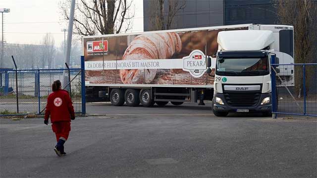 Kompanija Delez Srbija poklonila je danas Crvenom krstu Beograda 10 kamiona robe vredne 120.000 evra.