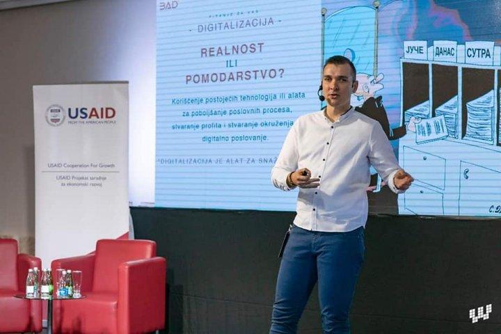 „Vi imate ogroman rascep između ljudi koji apsolutno ništa ne znaju o internetu i ljudi koji internet masovno koriste. Imate decu koja su na Youtube-u od treće godine, a imate ljude koje kada pitate da li imaju debitnu ili kreditnu karticu oni vam kažu – nemam, držim keš u džepu. Uspešnom digitalizacijom možete da povećate efikasnost, produktivnost, smanjite troškove što je najbitnije“, kaže Jovan.